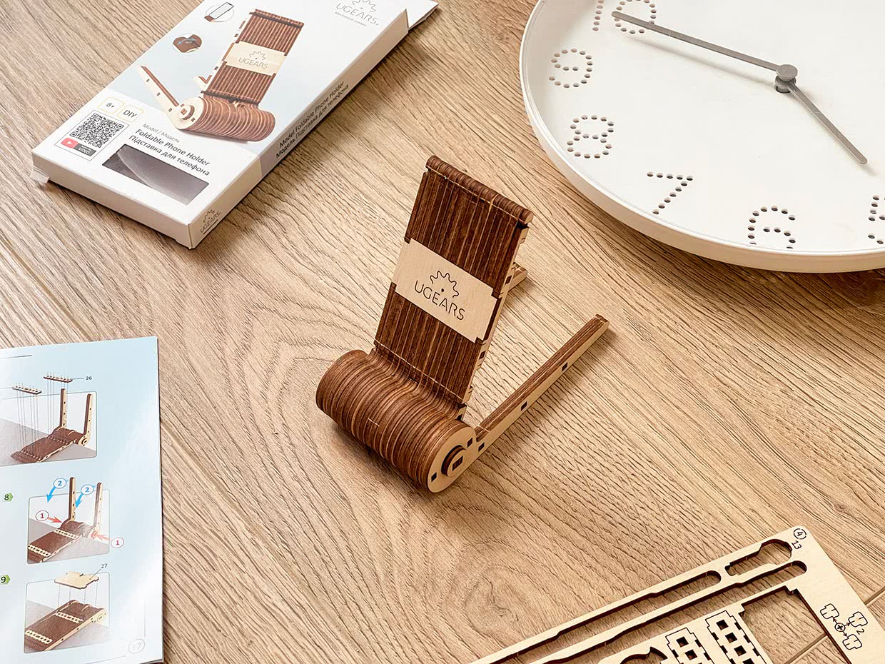 Делать что-то своими руками приятно. Вдвойне приятно, если это затем приносит пользу. Казалось бы, такая простая вещь: подставка для смартфона. Но нужная ведь! Дома, в дороге, просто для удобства. Именно её предлагает сделать Ugears. Раскладная, компактная, неожиданно устойчивая. А главное, что после неё аж руки горят ещё что-нибудь собрать. Чистый фан. Например, дракона… Кто такие…