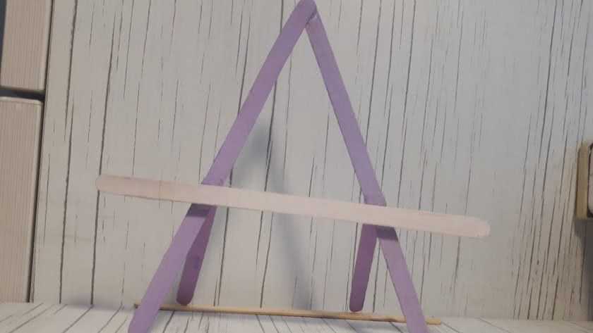 - Две дощечки ставят под углом. Одна служит опорой как для всей конструкции, так и для нижней части телефона. Вторую устанавливают наклонно. Из преимуществ — подставку можно сделать широкой, подходящей для любых устройств, на свободном пространстве размещают держатели для аксессуаров или офисных принадлежностей.