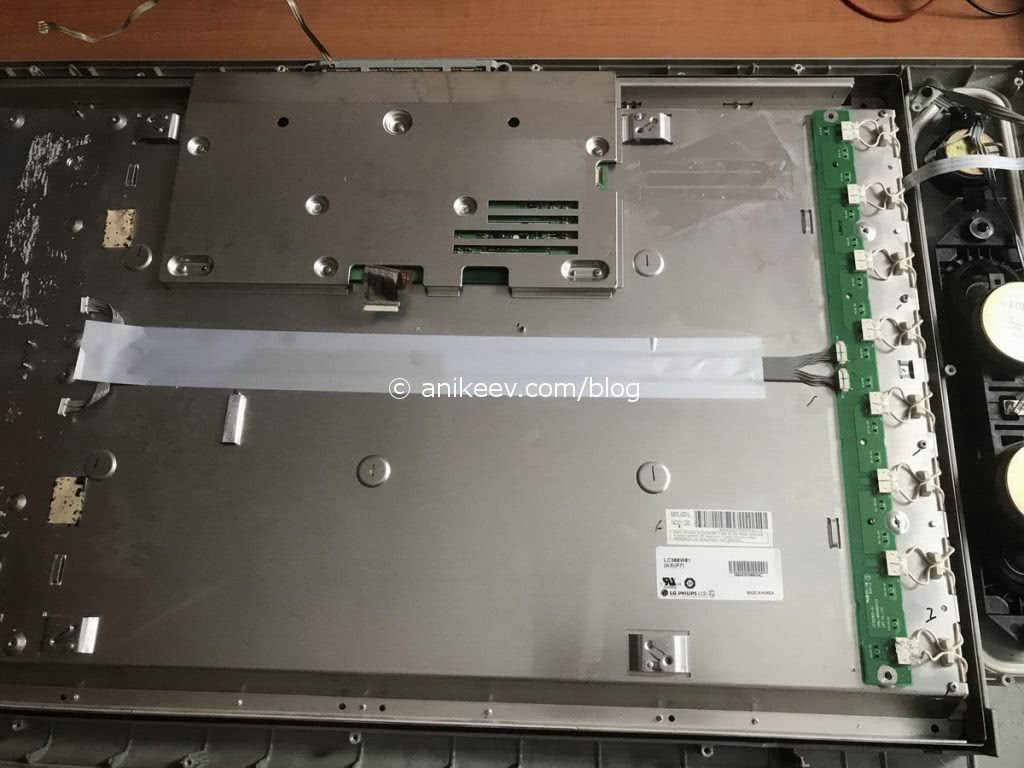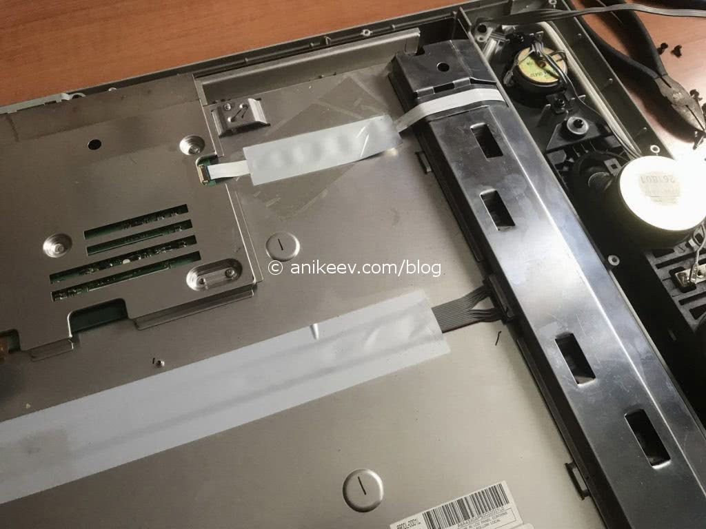 Любое неосторожное движение может вызвать обрыв шлейфа или вообще повредить матрицу. Разбирать корпус при включённом питании не стоит, на выходе инвертора формируется напряжение порядка киловольта