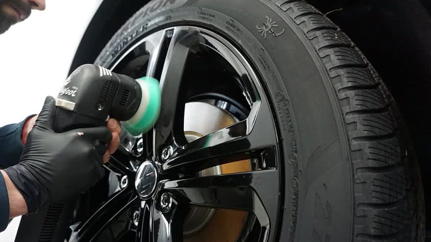 Перед началом первичной полировки поверхность тщательно протрите микрофиброй. Главное, избегать появления черных полос и перегрева поверхности – в этом случае придется удалить всю полирующую массу и проделать манипуляцию повторно. Полировка колес с алюминиевыми дисками требует сноровки и внимательности.