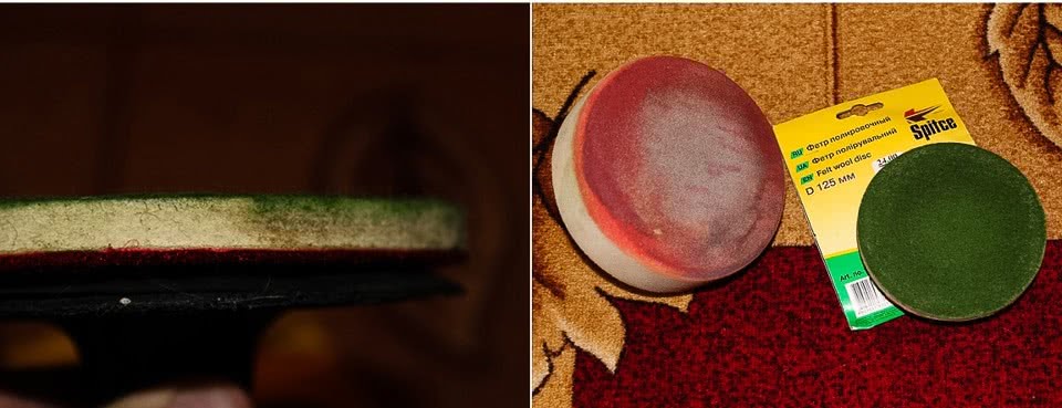 В качестве инструмента для полировки дисков будем применять те же, что и при шлифовке.Единственное, вместо кругов с абразивом, будем полировать мягкими кругами. Много положительных отзывов о насадках на основе войлока. На их поверхности хорошо удерживается полироль.