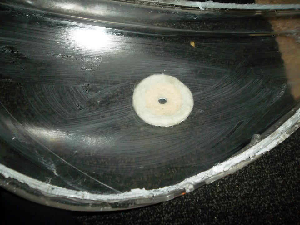 - Вращая круг на небольших оборотах, нанести пасту на фару.
