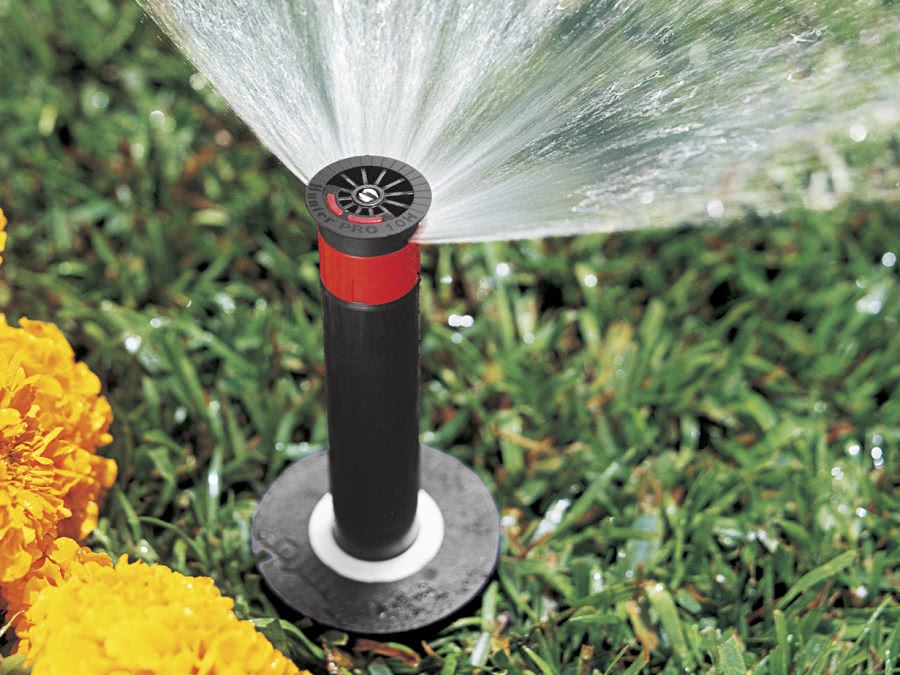 Например, для треугольного газона можно поставить три таких устройства с углом разбрызгивания 5-360 градусов. А в случае необходимости в центре монтируется круговой разбрызгиватель.