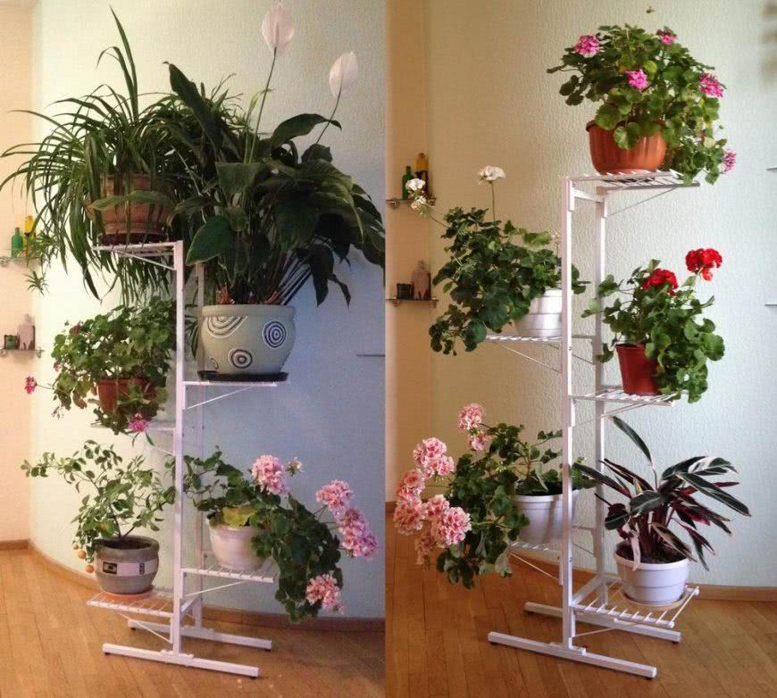 Если есть возможность, то дома можно соорудить очень интересную конструкцию, которая станет настоящим украшением комнаты. При помощи круглых подставок под горшки есть возможность сделать всю конструкцию более легкой, а тонкие фигурные стойки добавят ей изящности и стильности. Светлые тона будут более предпочтительные, но окончательная цветовая гамма формируется, отталкиваясь из интерьера.