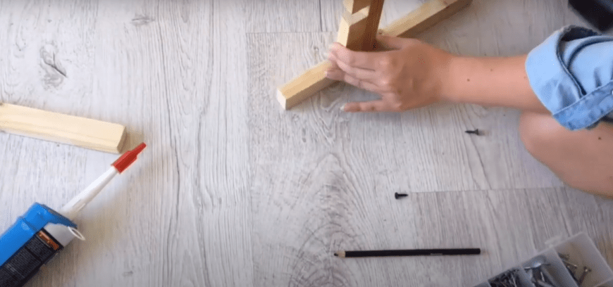 - детали верхней секции промазываем столярным клеем, соединяем между собой под углом 90 градусов;
