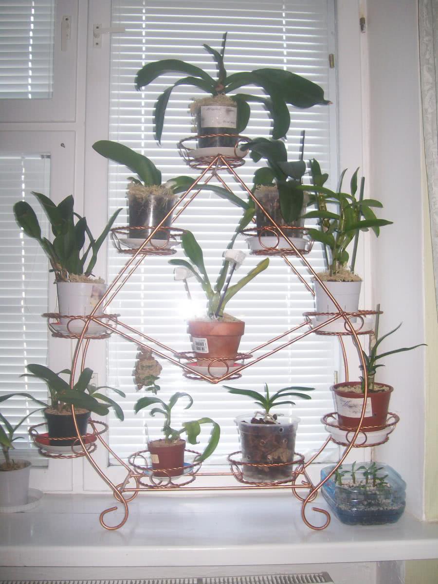 Такой вариант размещения цветов идеален для подоконника или лоджии. Подобная конструкция не массивна, поэтому не будет сильно затенять помещение.
