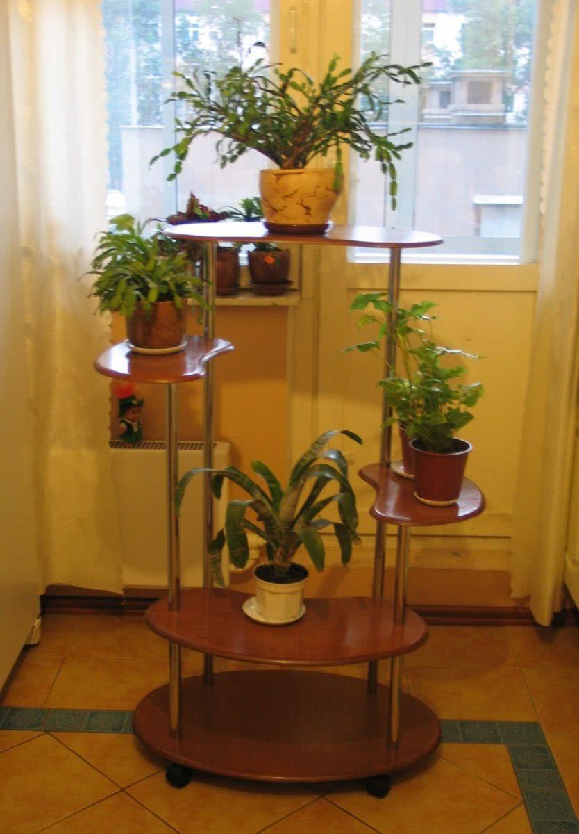 Подставки, стойки, полки или стеллажи для комнатных растений из дерева нуждаются в дополнительной обработке поверхностей от воздействия влаги. При качественном подходе они прослужат долго и отлично украсят интерьер помещения.