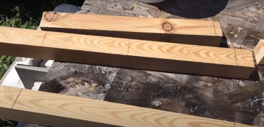 - Торцы досок спилить под углом, чтобы придать им треугольную форму.