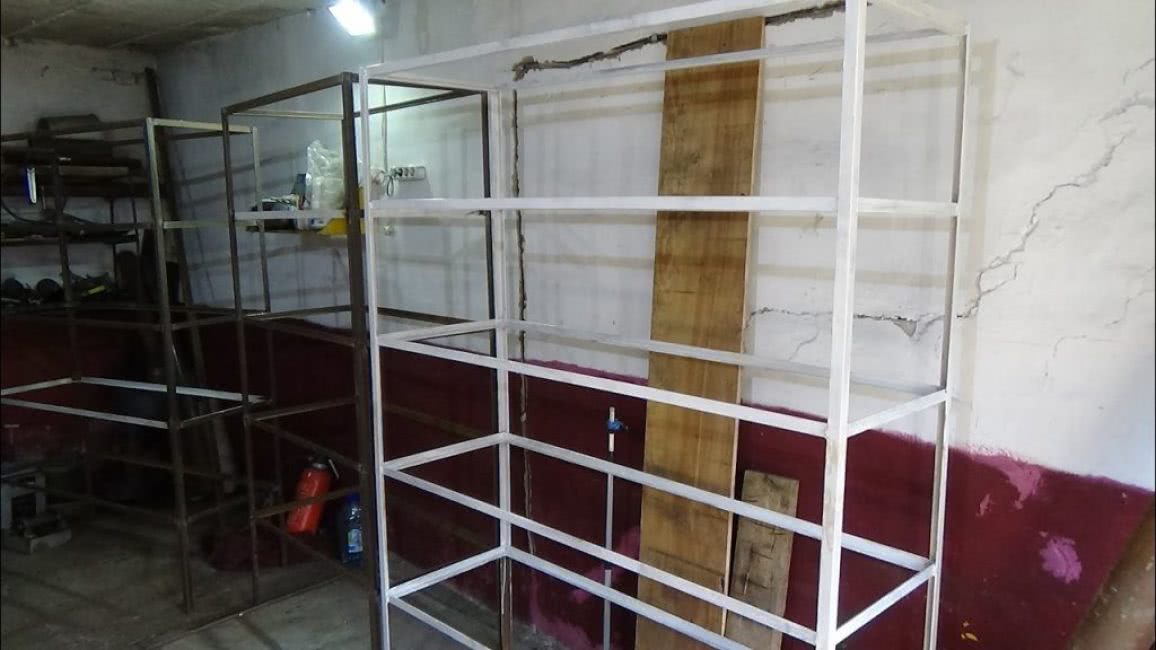После высыхания краски из дерева или деревянных материалов вырезаются полочки и подгоняются по размерам к готовой конструкции каркаса