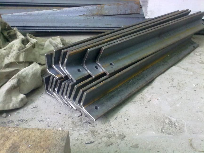 - Из металлического уголка с толщиной металла от 3-4 мм. Ширина полочки уголка — 25-45 см — в зависимости от планируемых нагрузок. Прочный, но металлоемкий материал, весит много, стоит дорого.