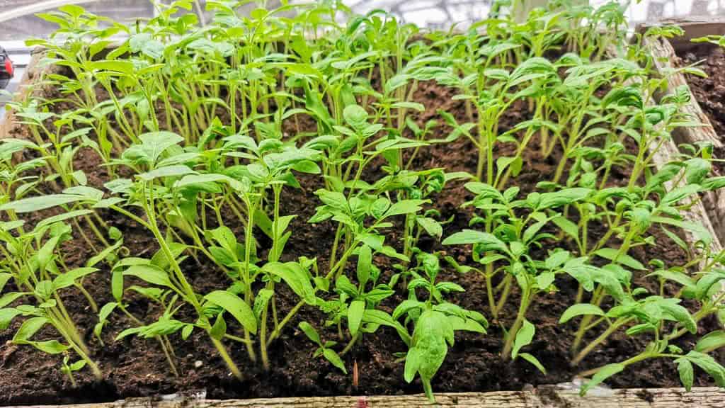 рассада томатов перед пикировкой