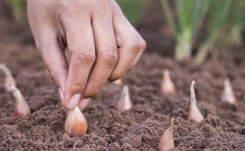 - головки лука можно посадить довольно близко друг к другу. При посадке луковицы не рекомендуется сильно углублять в землю.