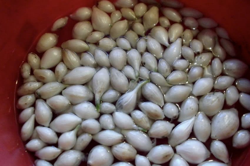 - Увлажнить луковицы теплой водой, укутать в мешковину и выдержать 48 часов при температуре 25С. Это ускорит всхожесть.