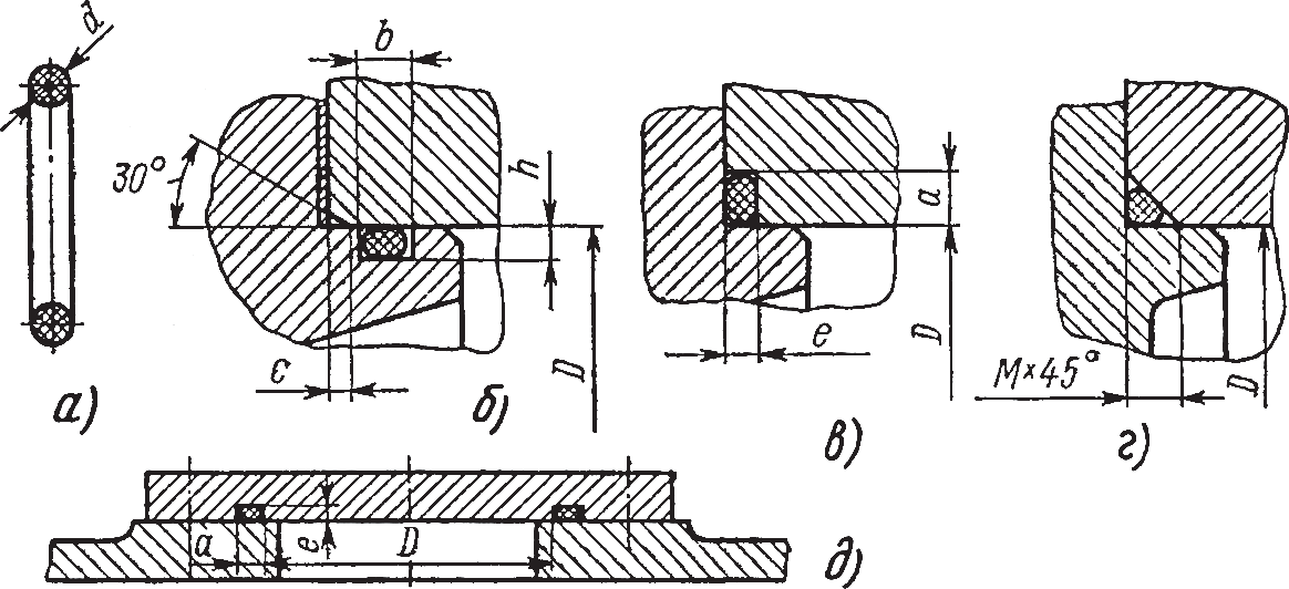 В настоящее время для герметизации фланцевых соединений широко применяют уплотнения в виде резиновых колец круглого сечения (рис. 14, а).