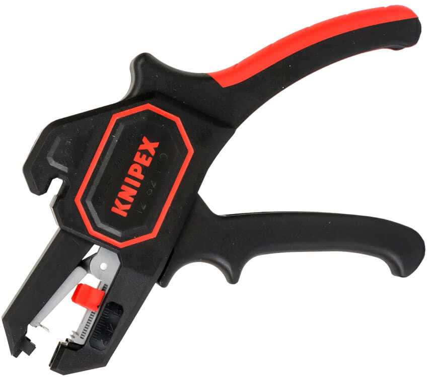 Заслуживает внимания инструмент для снятия изоляции Knipex KN 1262180, который может быть использован для одножильных, многожильных и тонких проводов сечением 0,2-6 мм2. При удалении оплетки инструмент автоматически подстраивается под разный размер кабеля, что исключает вероятность повреждения целостности жил. Благодаря особой конструкции головки, которая имеет удлиненное исполнение, можно работать с инструментом в труднодоступных местах.