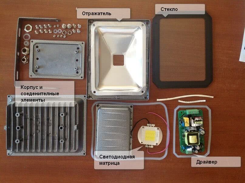 - Извлекается лампочка из рефлектора, на ее место ставят светодиод от 100 Вт.