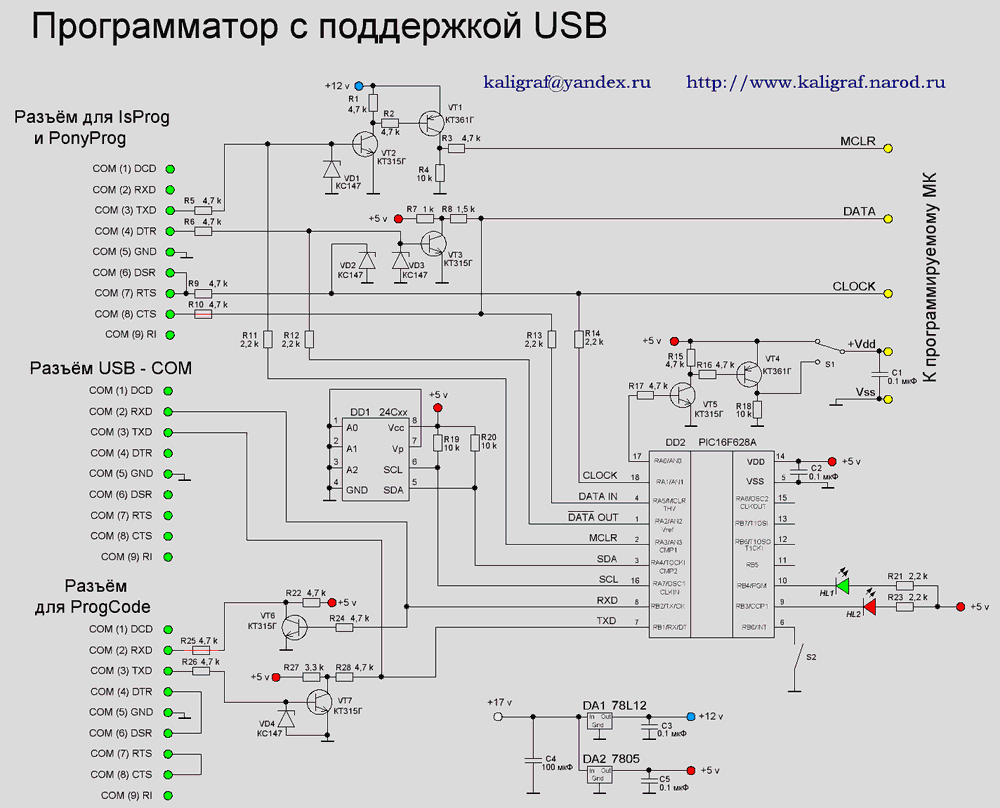 Первоначальная схема программатора не предусматривала поддержки USB и