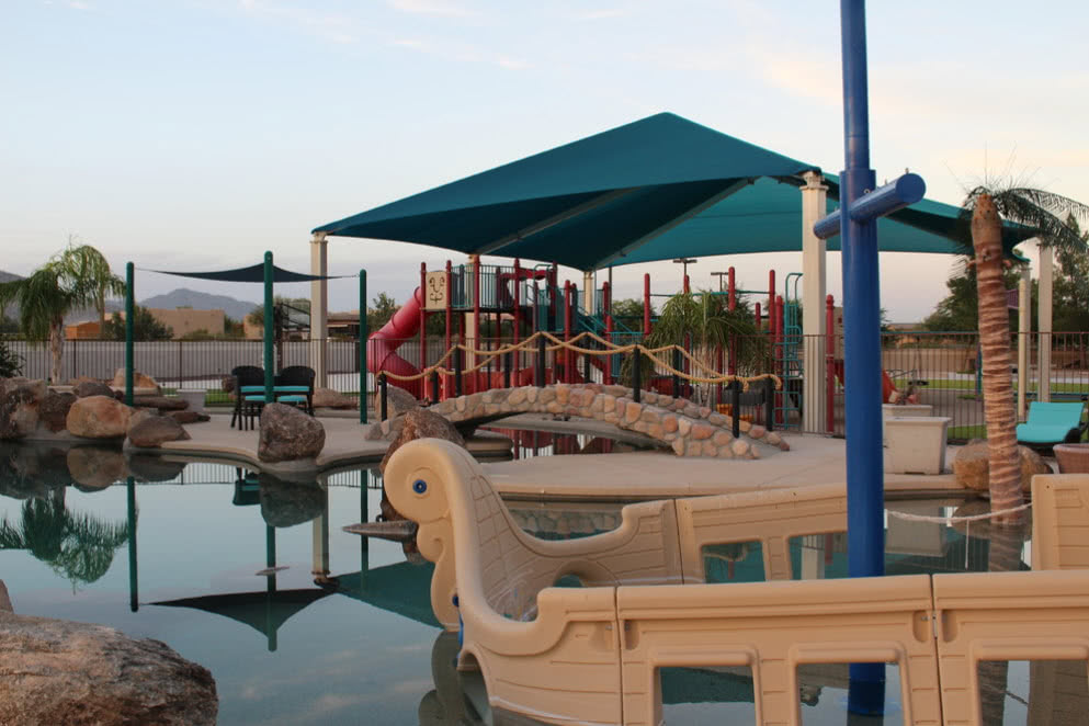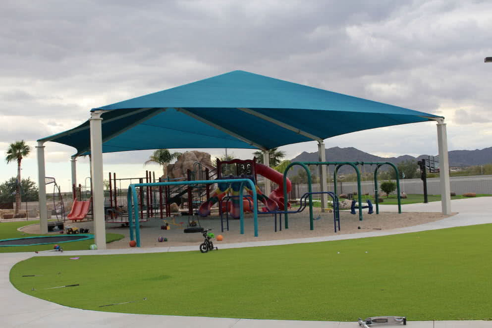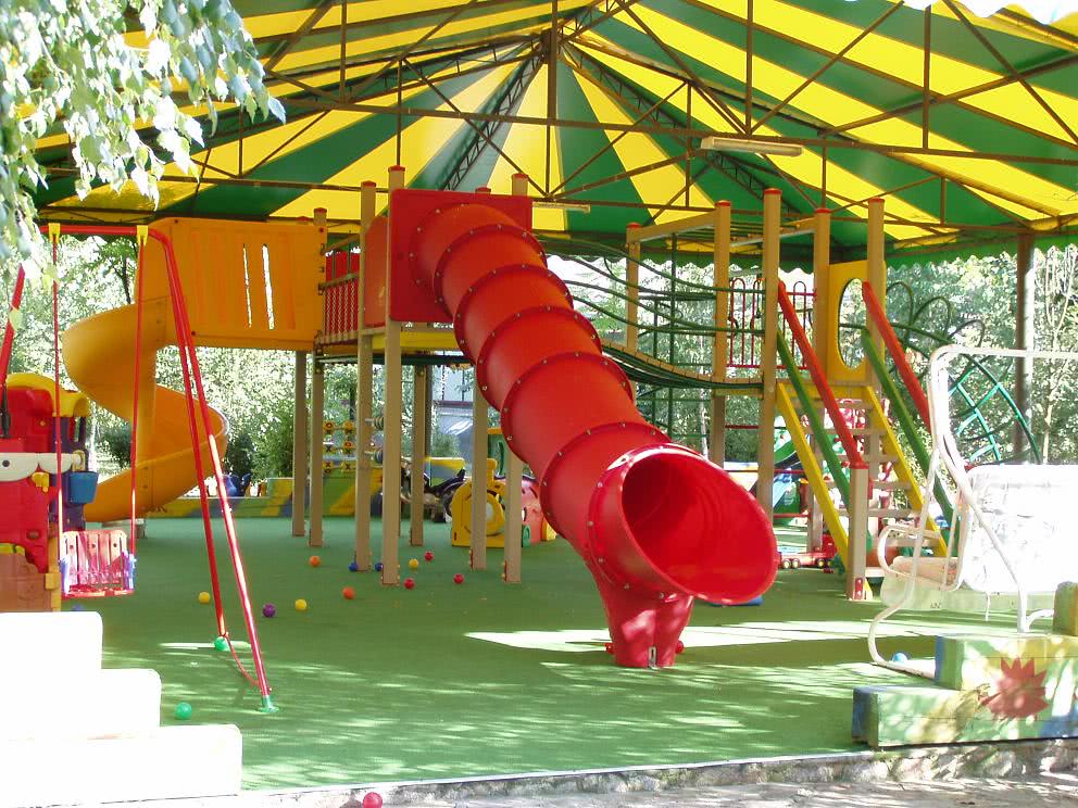 Этот вариант является востребованным среди семей с ребенком, что любит играться на свежем воздухе. Всем известно, что даже в плохую погоду ребенка достаточно сложно удержать в доме, а значит, следует сконструировать специальный навес, расположить его над песочницей, качелями или турниками для того, чтобы оградить ребенка от «капризов» погоды. Также стоит отметить, что навес продлит срок службы игровой зоны, защитив деревянные постройки площадки от осадков.