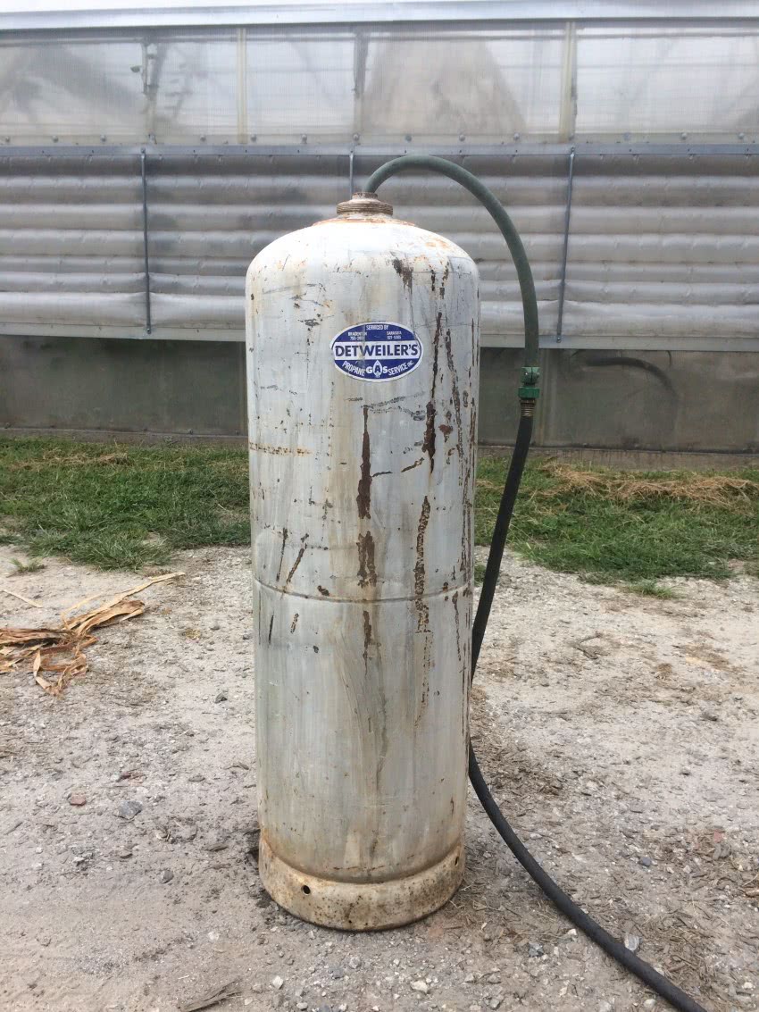Используем б/у баллон в качестве бака, обрабатываем нитрогрунтовкой его внутреннюю поверхность. Для этого сначала разрезаем сваркой его пополам, после проведенных процедур вновь тщательно спаиваем. Если этого не сделать, то вода будет пахнуть газом.