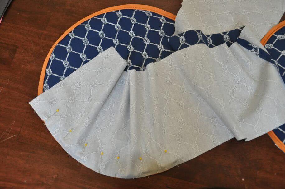 вырезанную по форме. Недопустимо, чтобы ее края выступали за кромку каркаса. Дабы этого не случилось, его ставят на материал и обводят карандашом.