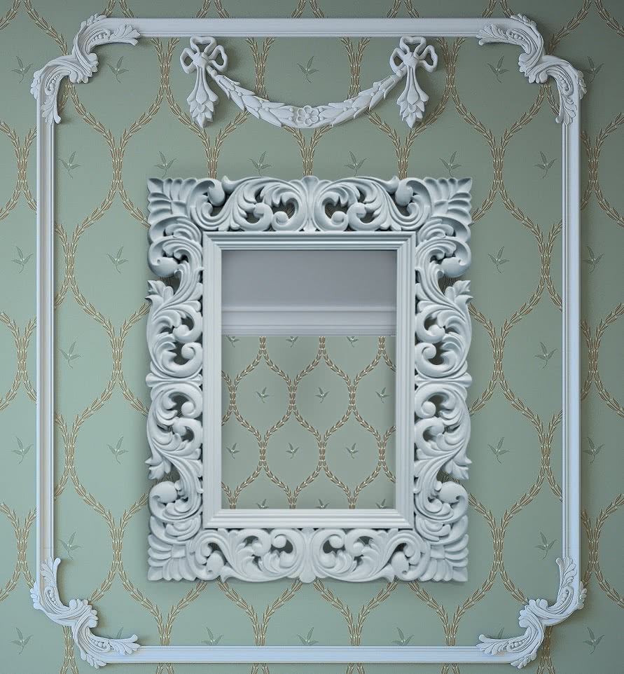 - Цвет подбирают так, чтобы обрамление гармонично сочеталось с палитрой оформления интерьера помещения.