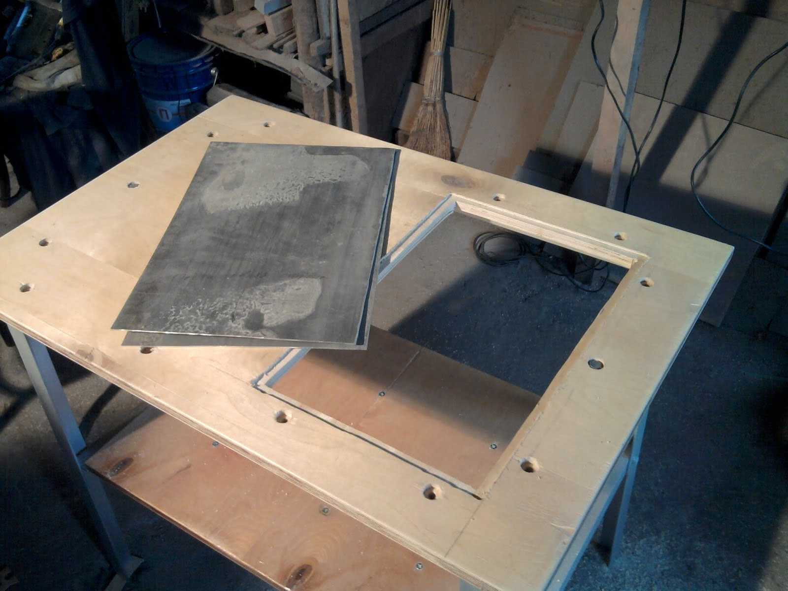 Отверстие, позволяющее углубить остов пилы в стол, следует выпилить заранее при помощи пилы-ножовки или электрического лобзика.