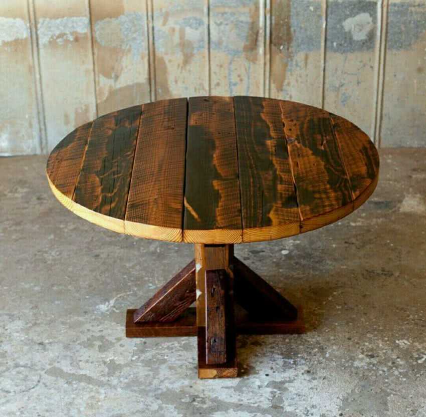 Советуем вскрыть стол лаком, так как древесина будет смотреться очень привлекательно на любой кухне. По желанию можно окрасить поверхность любым цветом. Изготовление и сборка круглого стола своими руками окончены.