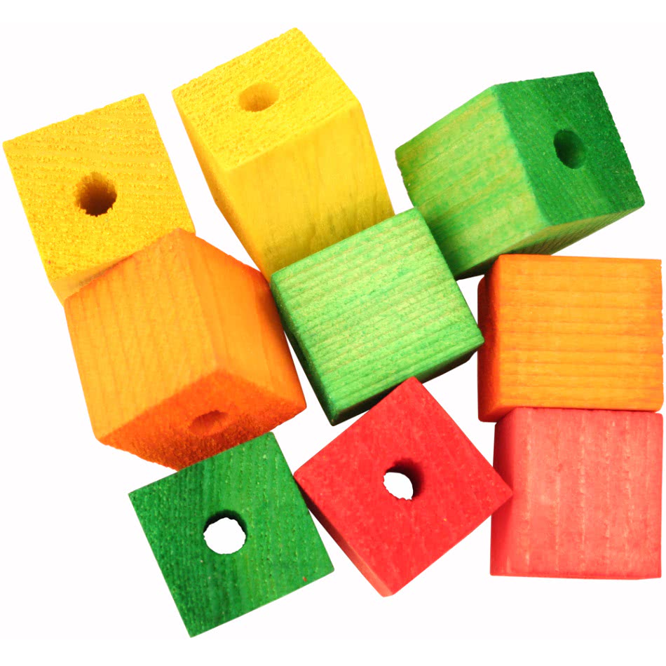 - Чтобы сделать кубики красивыми и интересными, их нужно покрасить в разный цвет. Для добавления увлекательности можно сделать разные отверстия по центру кубика (не забывайте их тоже шлифовать с помощью круглого напильника). Затем вы можете оставить разукрашенные кубики как есть, или наклеить на них красивые картинки, буквы, цифры или нарисовать смешные рожицы