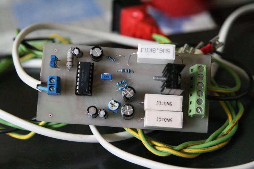 Чтобы регулятор поместился в корпус от зарядного устройства мобильного телефона, сопротивления используют СМД типа (1206). Все резисторы установлены на плате, кроме R 10. Некоторые могут быть составными (из последовательно соединенных резисторов собираем нужный номинал).