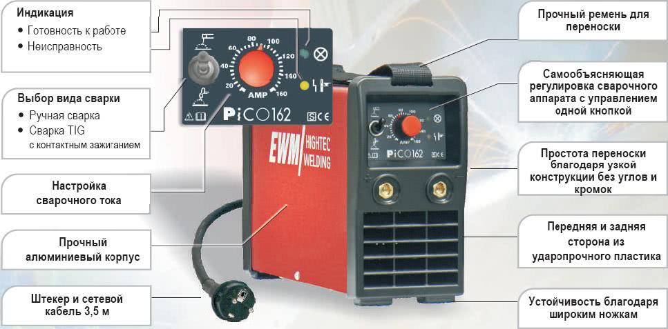 Помимо регулировочной ручки, управляющий блок инвертора снабжается дополнительными средствами защиты и настройки. Они помогают поддерживать устойчивую дугу, делают сварку безопасной.