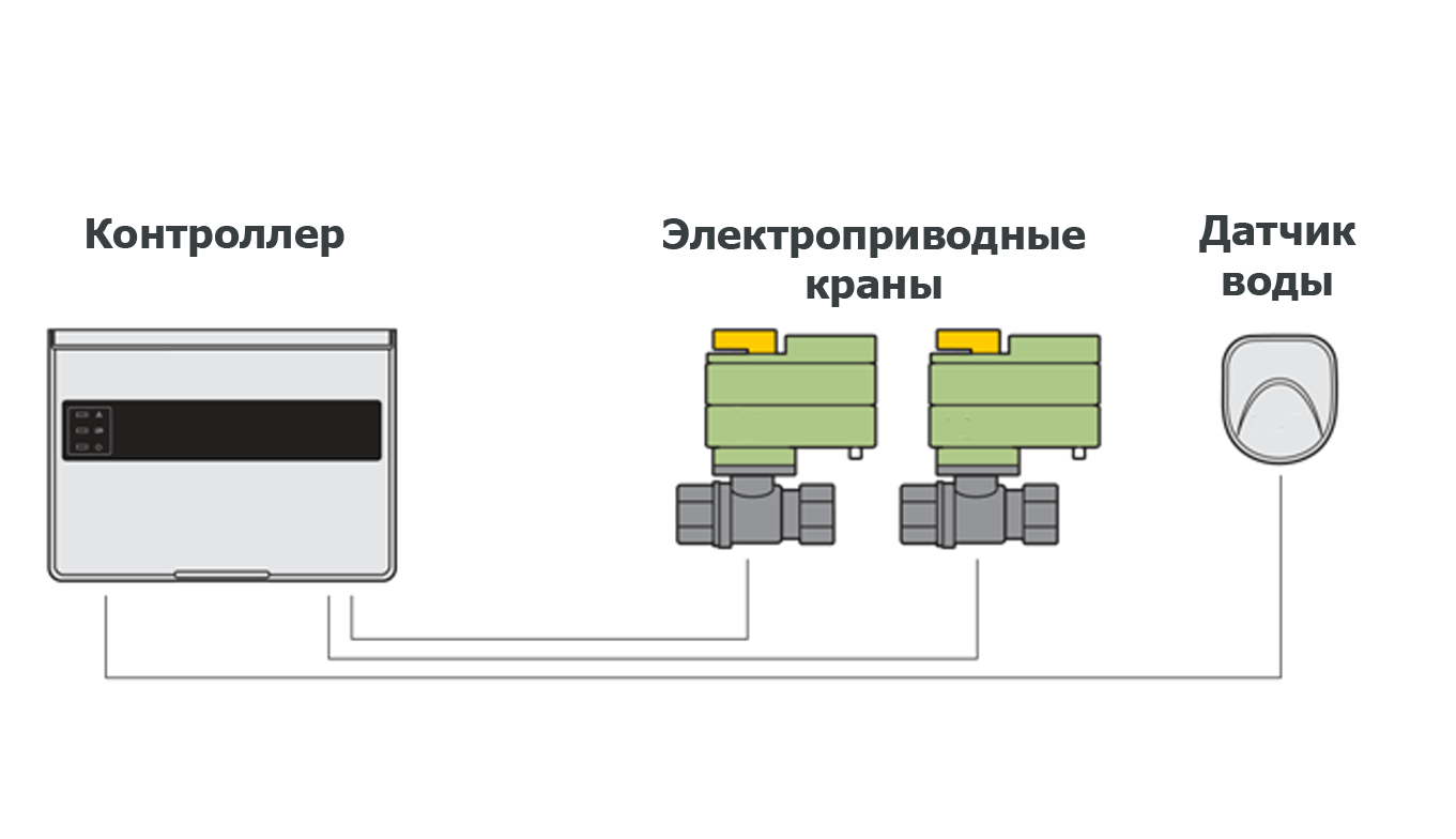 Задача приборов без исполняющих устройств – только просигнализирует о затоплении, поэтому они не связаны с узлами управления электрическими приводами. Прибор выглядит как пластиковая головка, оборудованная реагирующими элементами.