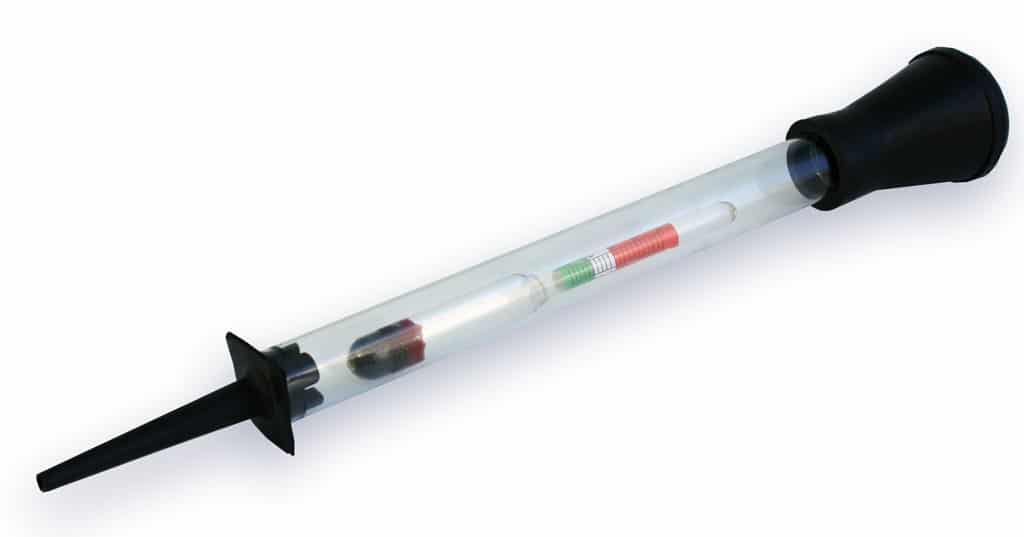 Не стоит забывать, что не только уровень кислоты, но и её плотность являются важной характеристикой работоспособности батареи. Получить данные о плотности раствора можно с помощью ареометра