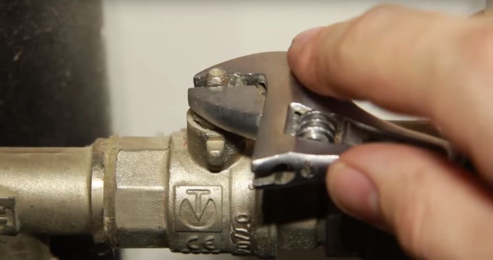 Открытие крана выполняем разводным ключом.