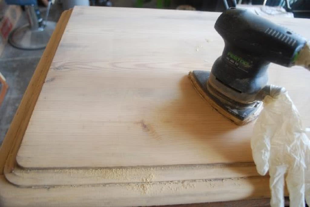 Для начала необходимо полностью разобрать изделие, а после проверить на исправность фурнитуру. Если она в порядке, то приступаем к шлифовке поверхности, если нет – покупаем новую фурнитуру, заделываем старые и делаем новые отверстия.