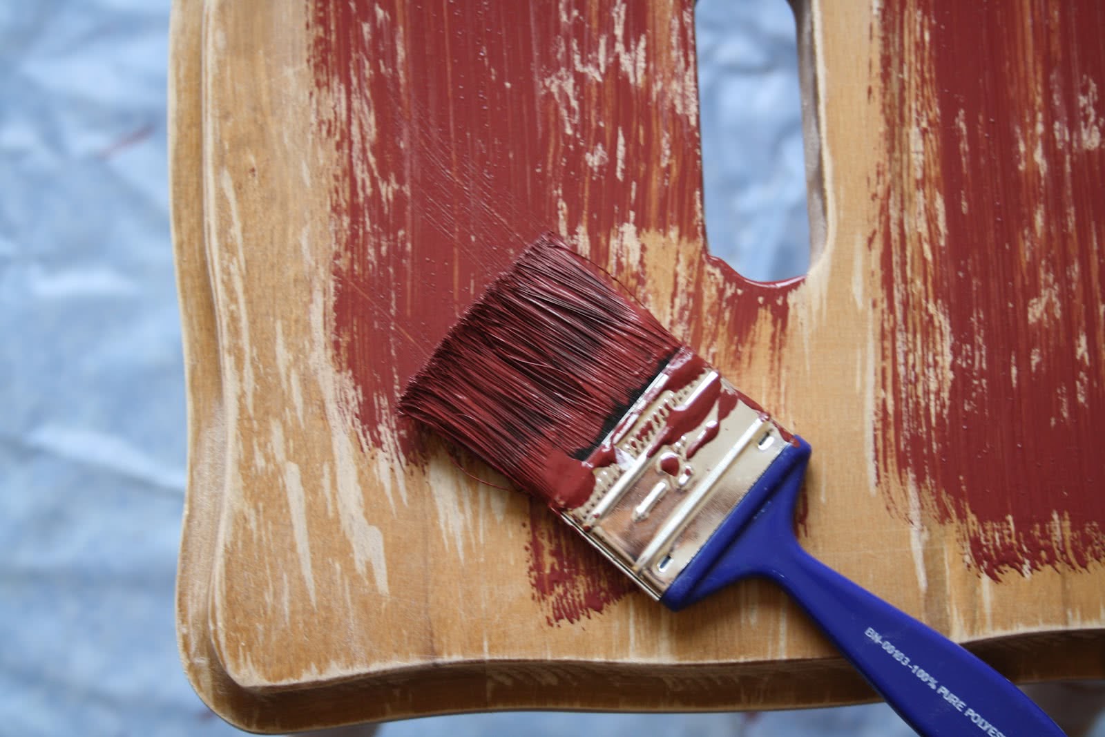 - Нанести первый слой краски, просушите и отшлифуйте наждачной бумагой. Удалите деревянную пыль, и приступите к нанесению второго слоя краски.