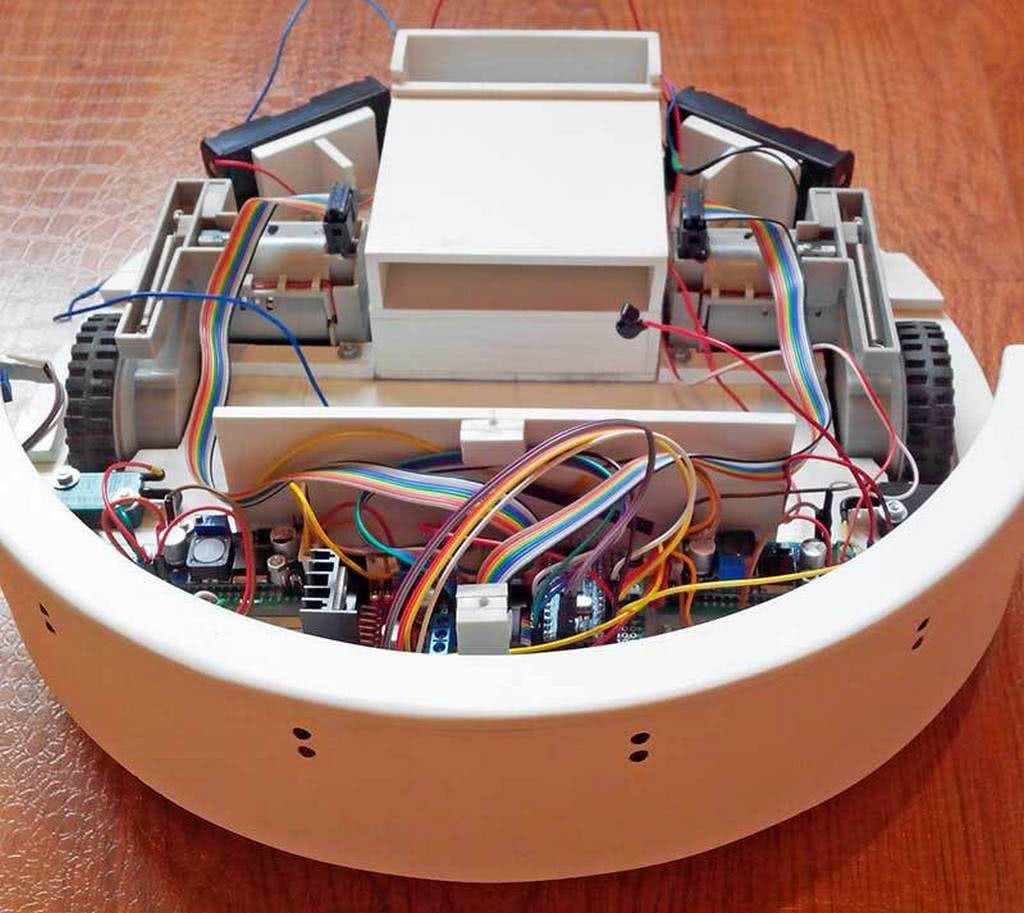 - Размещению колес. На момент движения пылесос должен быть устойчивым. Рекомендуется создавать 2 ведущих, которые расположены параллельно, а также 1 управляющий, за счет которого проводится поворот устройства.