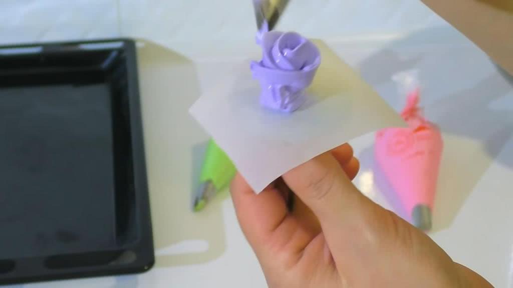 Если вы все же отдаете предпочтение гвоздю, то правильно подберите его диаметр. Положите на него небольшой кусочек пергамента. Тогда вам будет максимально легко снять готовый цветок и убрать его в холодильник.
