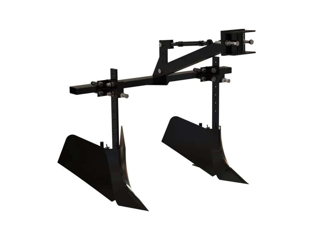 - У двухрядного окучивателя можно добавить функцию регулировки ширины при помощи шарнирных механизмов. А чтобы контролировать угол наклоны листов, используйте штанги.