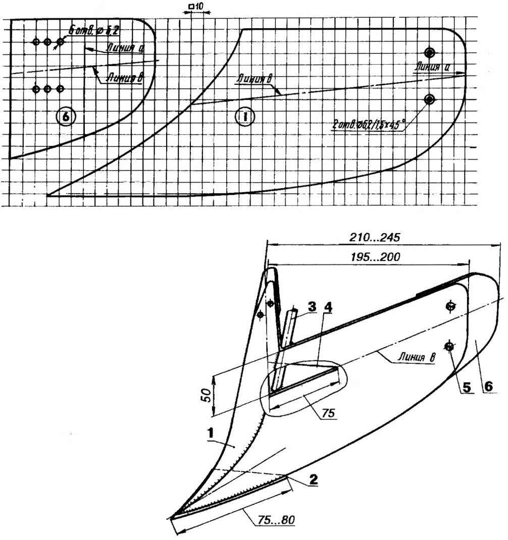 Для изготовления рабочего органа окучника с двумя отвалами и подрезным ножом следует выполнить следующие действия: