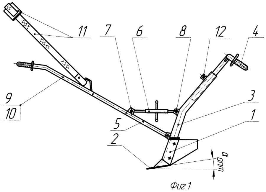 Рис.2. Схема сборки ручного окучника плужкового типа (вид сбоку)