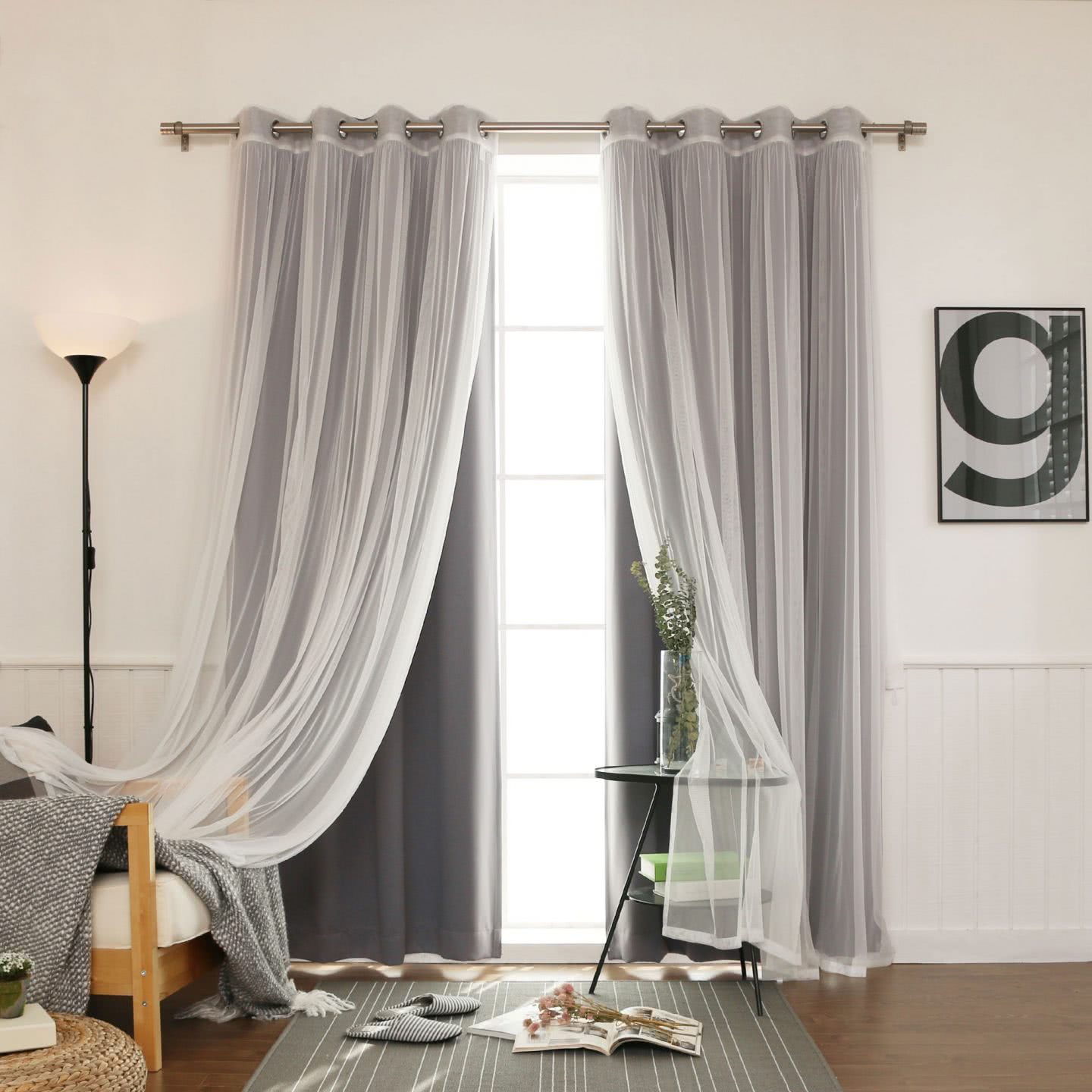 Особенностью комбинации тюля и штор является то, что тюль делает помещение уютным, но он неплотный и от солнца и взглядов посторонних не защищает.