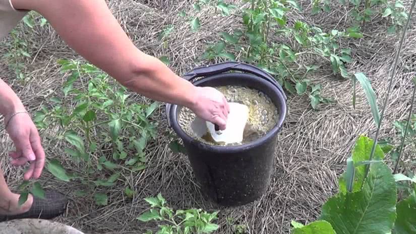 Для ее приготовления нужно растворить стакан золы в ведре воды и полить ею кусты томатов. Нерастворенные остатки можно высыпать под кусты.