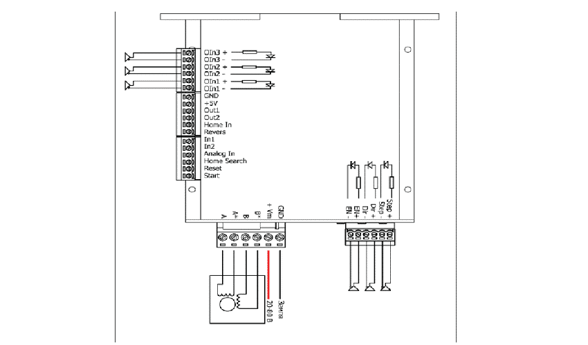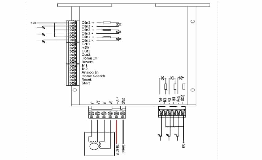 Драйвер является блоком управления шаговым двигателем. В станках ЧПУ управляющие сигналы формируются на ЧПУ контроллерах, поэтому к драйверу подключают 4 вывода шагового двигателя, управляющие провода с контроллера ЧПУ (обычно 4 провода) и питание + и — с блока питания. Сигналы с контроллера поступают в драйвер, где уже они управляют переключением ключей силовой схемы питающего напряжения, идущего с блока питания, через эти ключи на двигатель.