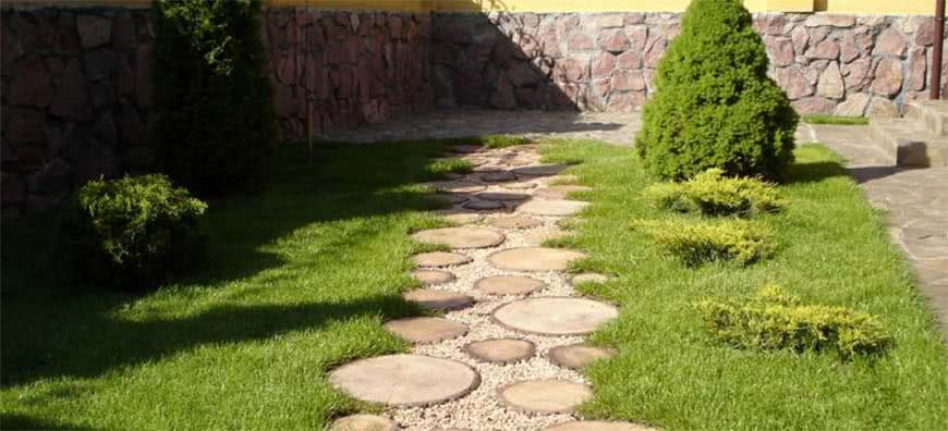 Уюта всегда добавят оригинальные дорожки на дачном участке. Их делают из бруса или из камня. А остатки материалов всегда можно пустить на сооружение очередной композиции.
