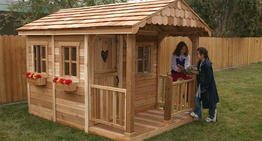 Детям, безусловно, понравится наличие своего игрового домика на дачном участке. Внутри могут размещаться скамейки, столик или другая мебель. Все зависит от фантазии. Домик можно украсить яркой клумбой или самодельными декорациями. Обычно ребята сами с удовольствием принимают участие в украшении своей территории.