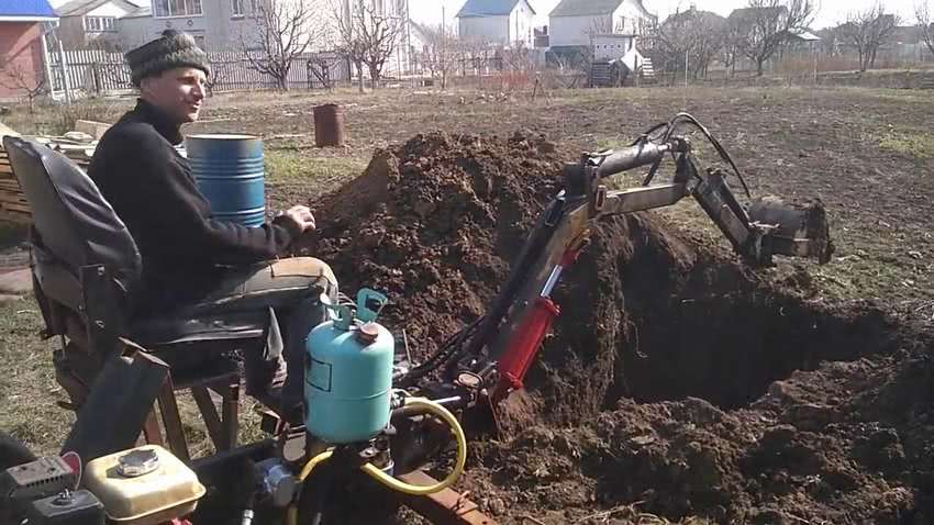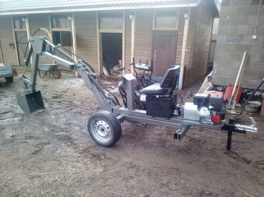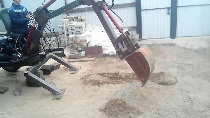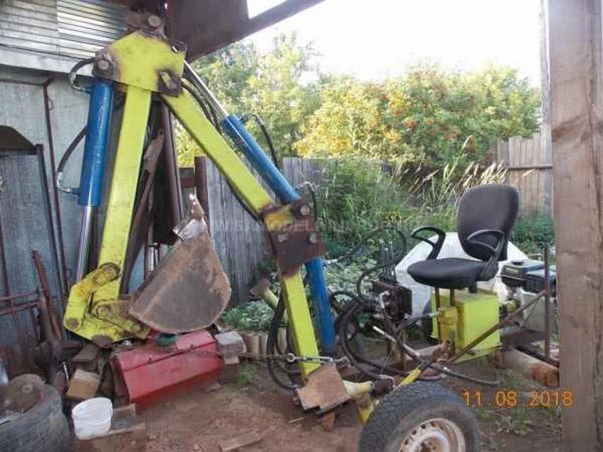 Если в хозяйстве уже имеется мотоблок или мини-трактор, логично собрать прицепной мини экскаватор своими руками с дополнительной точкой крепления.