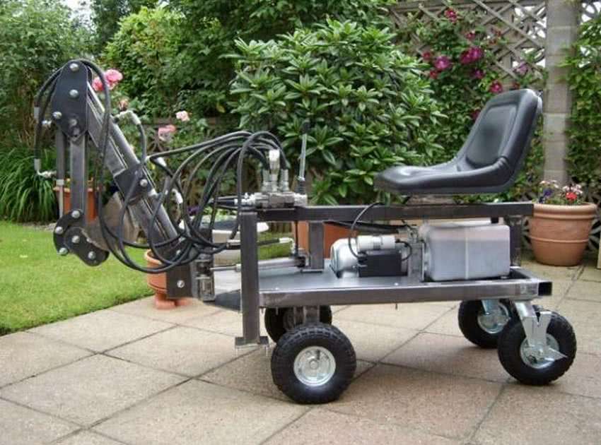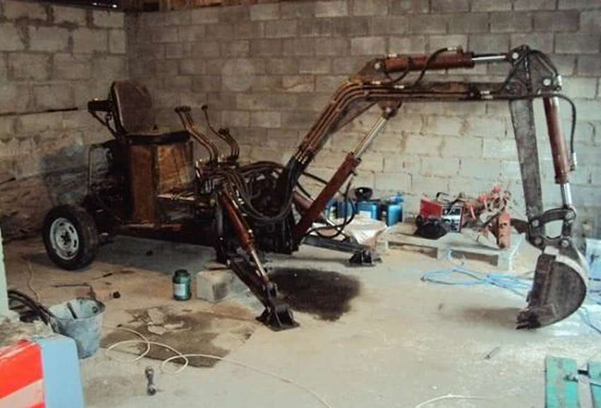 Некоторые домашние умельцы, собирают самодельный мини-экскаватор из готовых узлов. Необходимые детали приобретаются в магазинах, но в этом случае, гораздо проще и дешевле будет купить уже готовую модель. Поэтому мы рассмотрим вариант самостоятельной сборки из старых деталей.