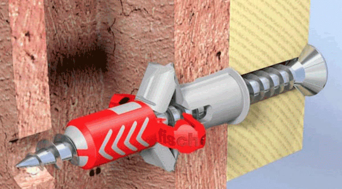 Благодаря рельефной резьбе, имеющейся на таких крепежах, упрощается процесс введения дюбеля в ячеистый стройматериал. При этом не повреждается слой штукатурки на стене.