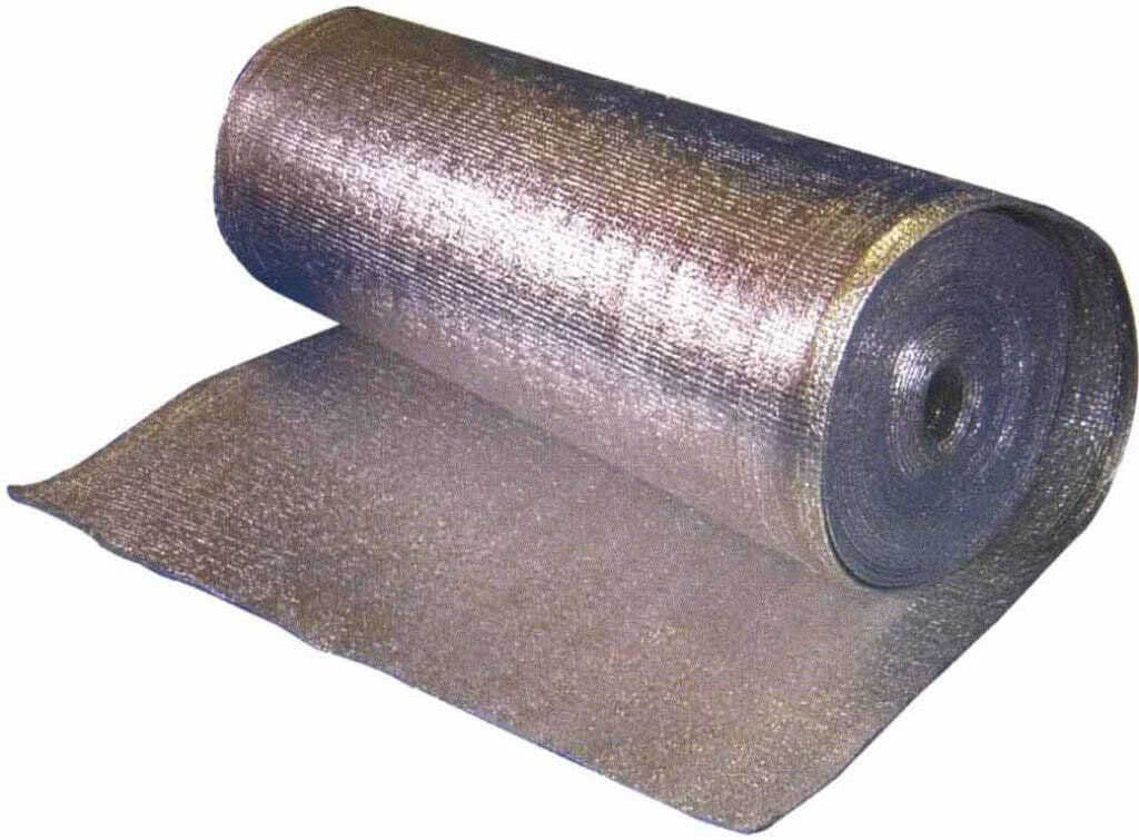 - На минеральную вату крепим теплоотражающий утеплитель: он одновременно будет защищать минеральную вату от воды и отражать тепло внутрь. Его нужно закрепить плотно друг к другу с помощью металлического скотча.