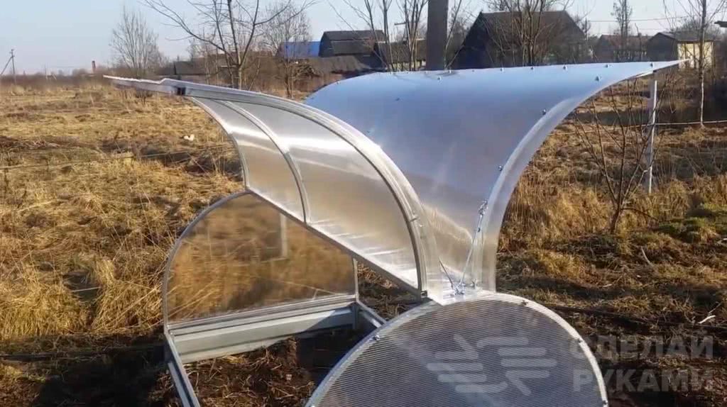 Конструкция типа «бабочка» очень удобная, так как с ней можно легко добраться до любого растения внутри. При этом нет необходимости прилагать к этому лишние усилия. Еще одно преимущество – это простой и быстрый монтаж конструкции